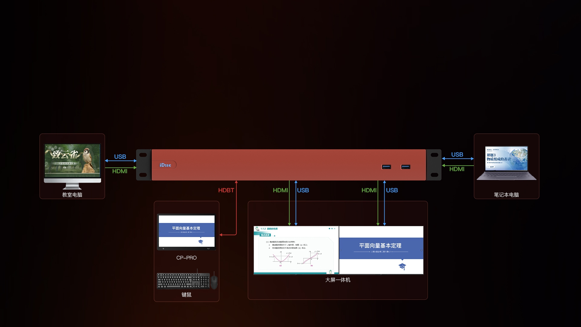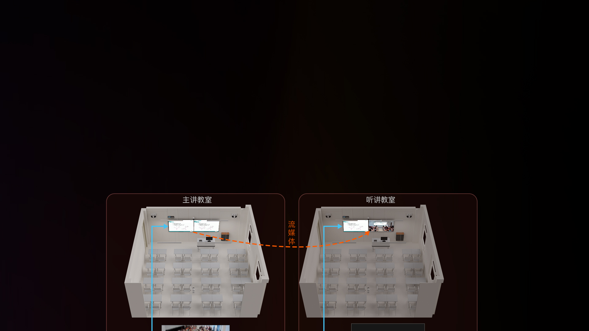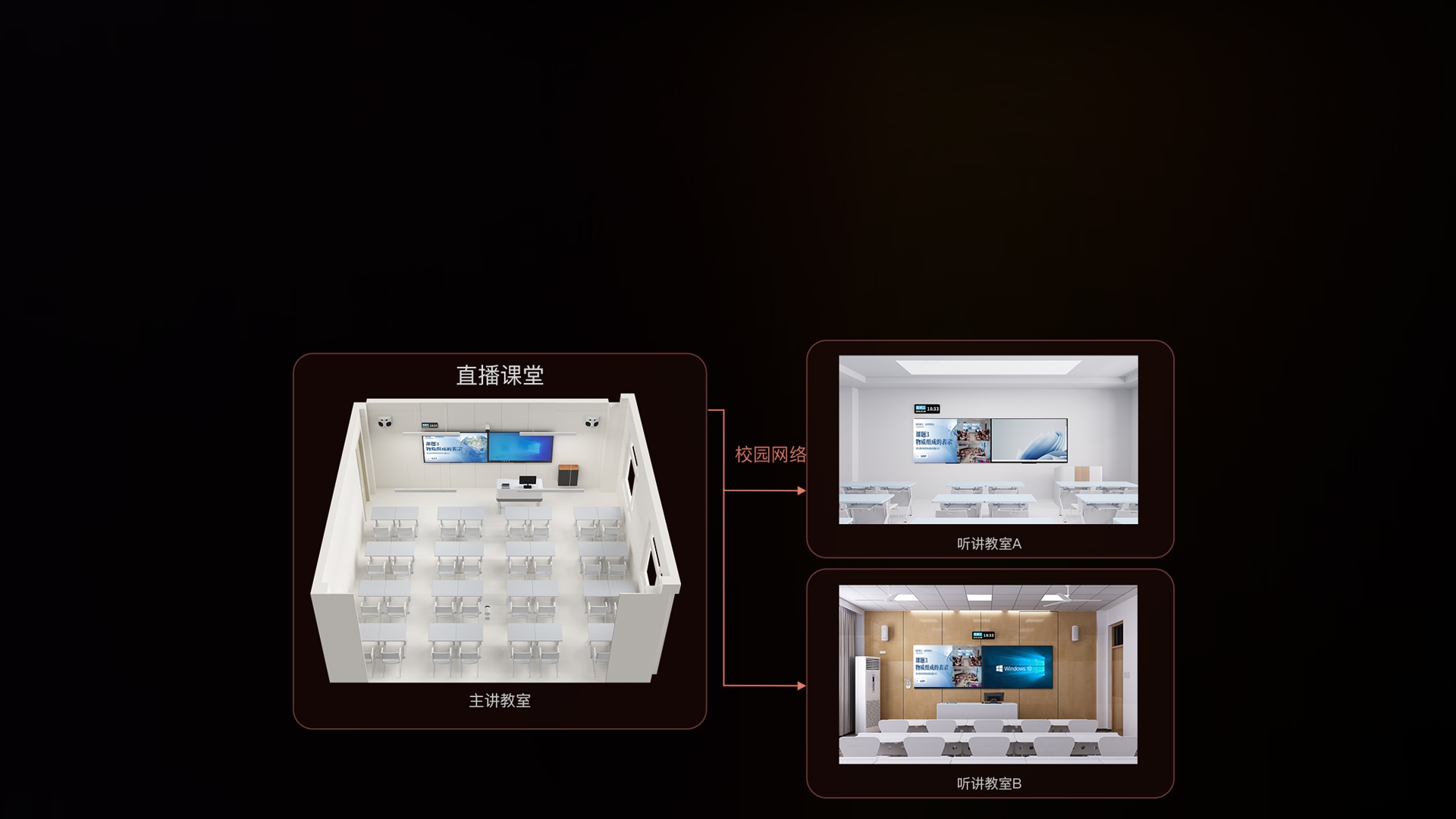 - 听讲教室:同步接收主讲教室授课声画/课件/板书,可随时发起提问