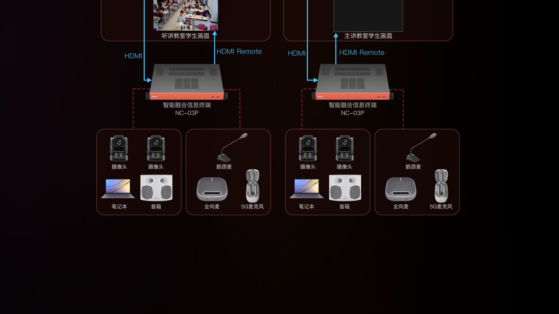 - 主讲教室:实时观察两地学生状态,即时邀请/响应互动
